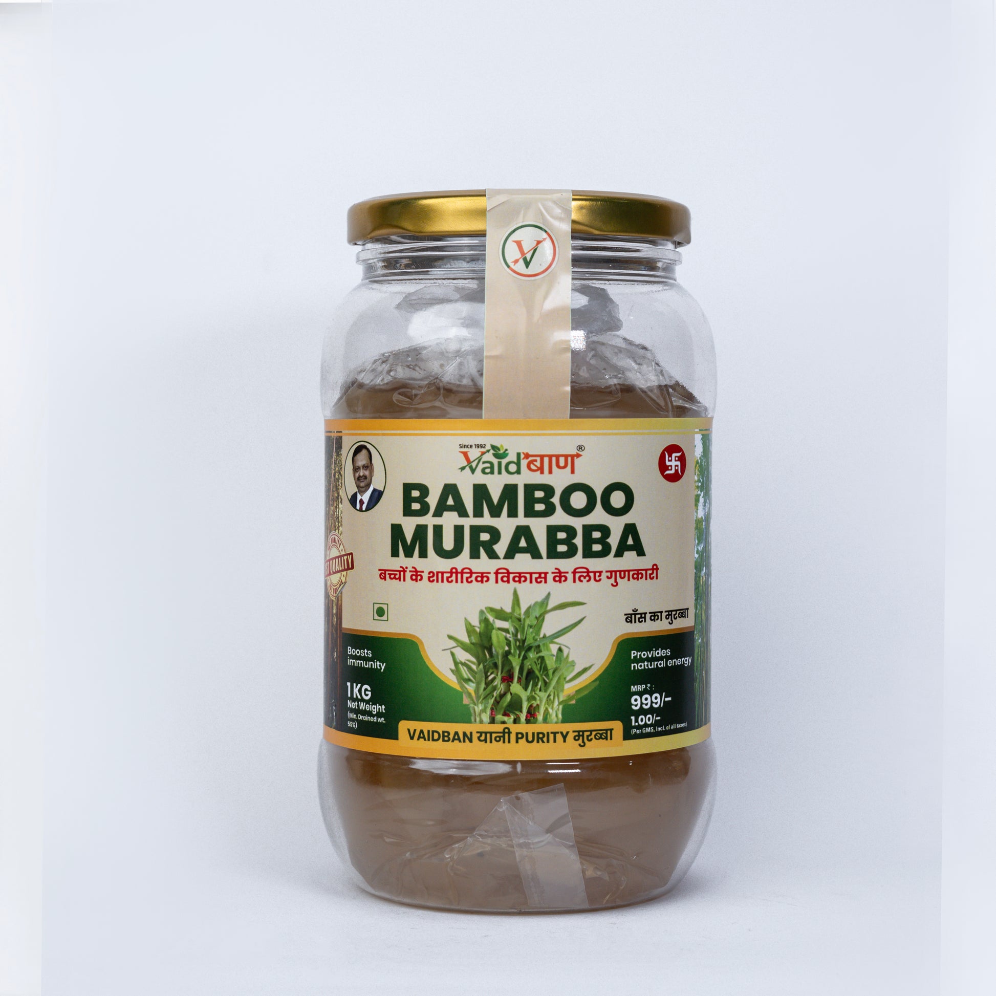 Vaidban Bamboo Murabba is a rare Ayurvedic delicacy made from tender bamboo shoots (baans), known for their rich calcium and iron content. It naturally boosts immunity, provides strength, and supports physical development in children. With its unique earthy sweetness and nutrient profile, Bamboo Murabba helps in bone growth, improves digestion, and offers sustained energy for an active lifestyle.