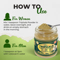 Mix 1 teaspoon (5 grams) of Triphala powder with warm water and consume it before bedtime or early morning on an empty stomach for optimal digestion and detox benefits.