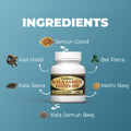This supplement supports blood sugar regulation by harnessing Kala Jamun, Methi Beej, and other potent Ayurvedic ingredients.