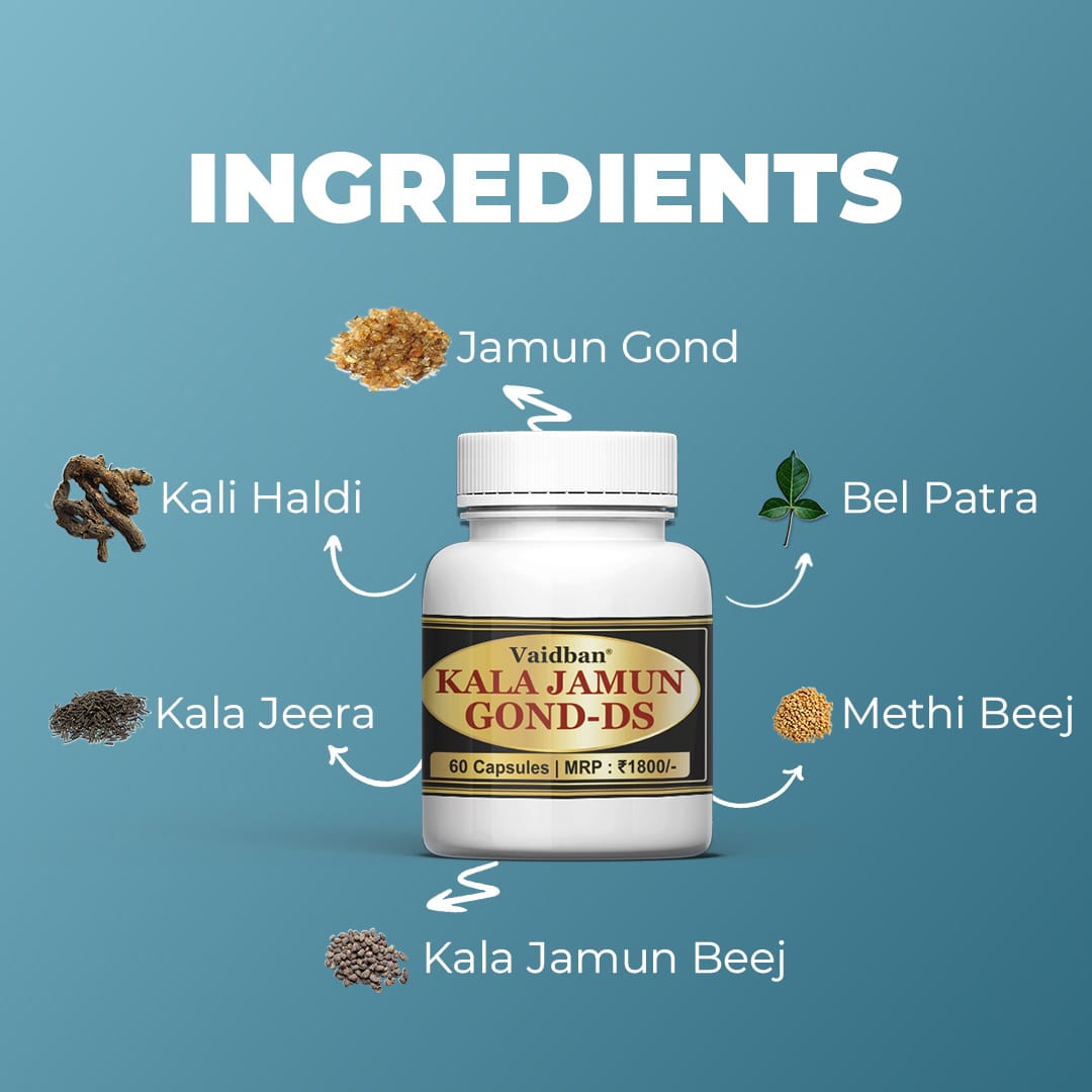 Vaidban Kala Jamun Gond-DS Capsules (Pack of 60 Capsule) - Natural Support for Diabetes Management