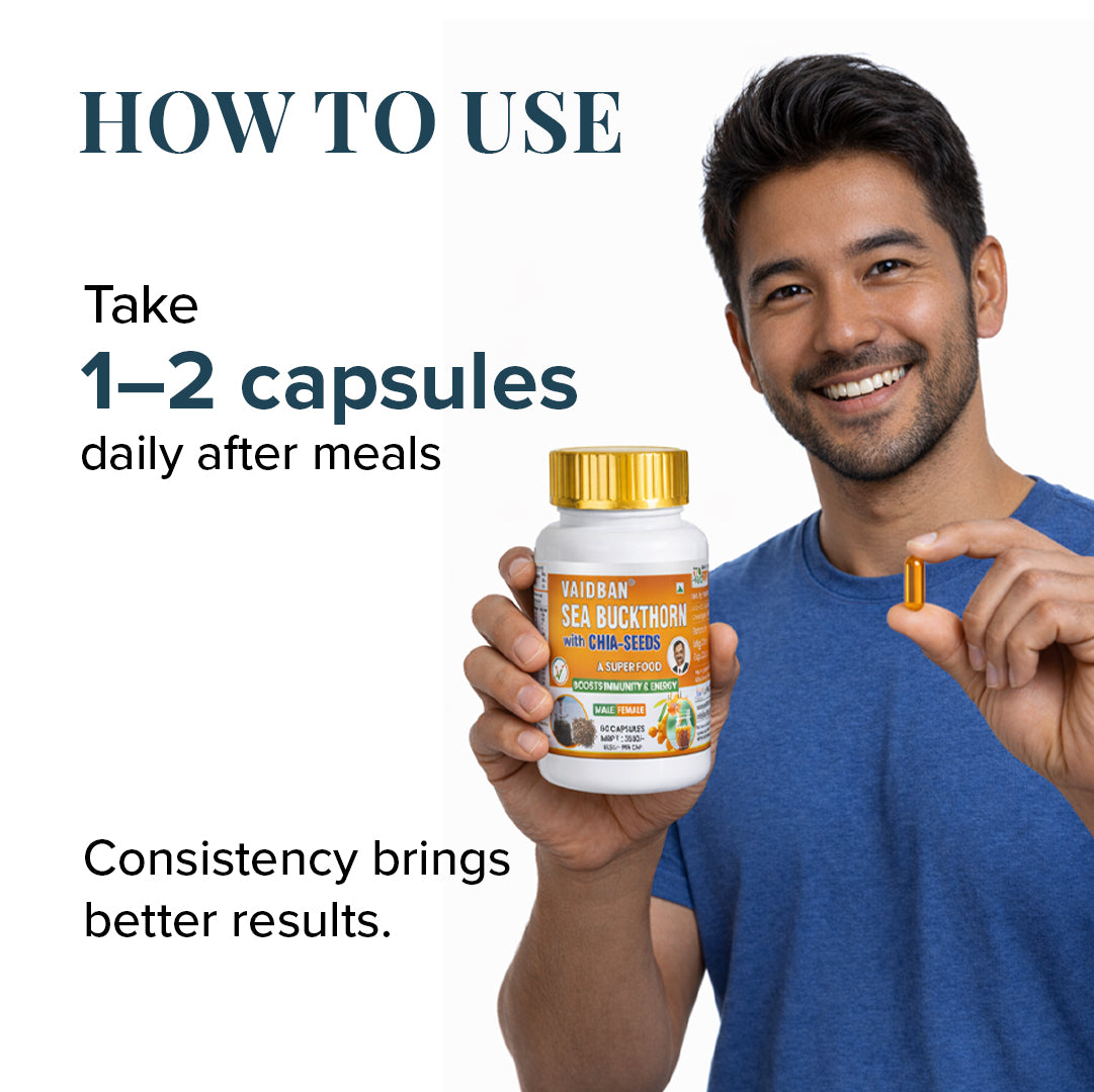 Experience the power of nature's most potent superfoods combined in one premium Ayurvedic formulation. Our Sea Buckthorn with Chia Seeds capsules deliver authentic wellness through carefully sourced ingredients, crafted to boost your immunity and vitality naturally.