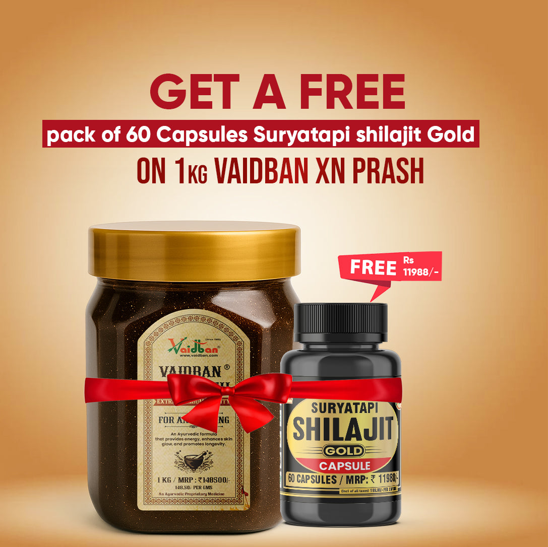 Where ancient Ayurvedic wisdom meets the opulence of royal tradition, Vaidban XN-Prash stands as the rarest elixir of wellness. Enriched with Swarna Bhasma (Pure Gold Leaf), this extraordinary Chyawanprash is crafted for those who seek eternal youth, radiant skin, supreme immunity, and revitalized energy.