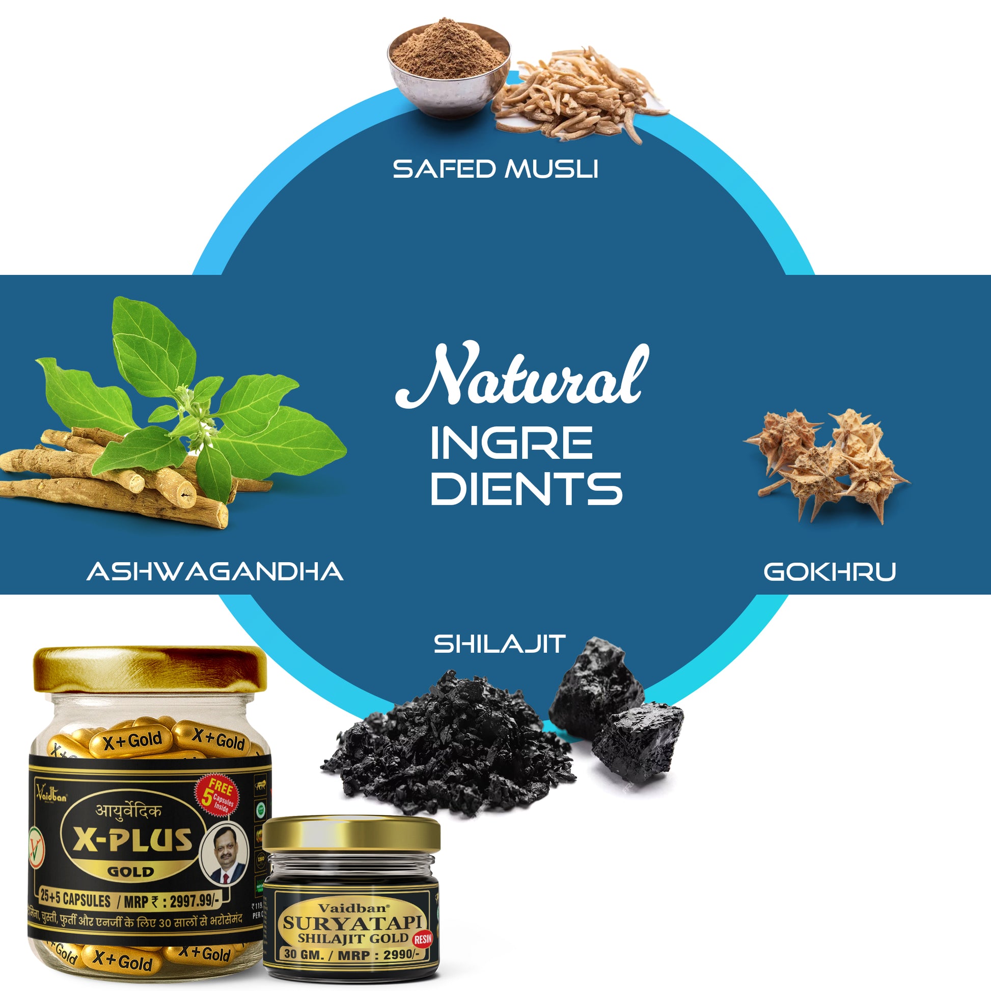 X - Plus Gold Capsule + Suryatapi Shilajit Gold Resin - Men Wellness Combo